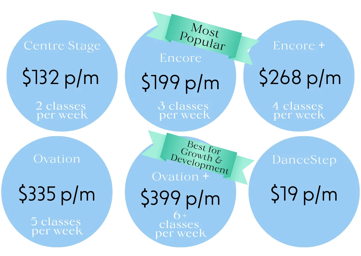 Your monthly installments cover more than just your classes. Our inclusive pricing package means that there are no hidden costs or extra invoices that might pop up during the year- keeping dance easy to budget for.